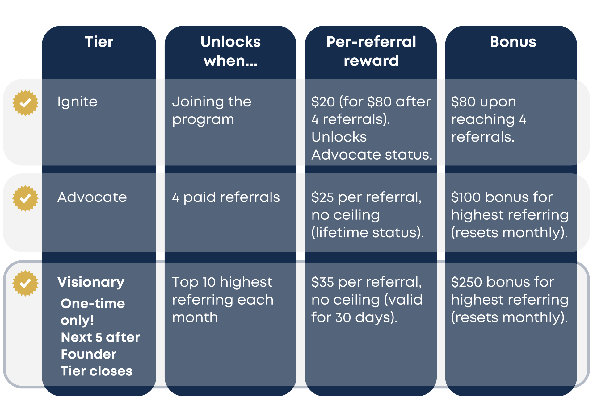 You’ll get a confirmation email with your status. If you’re one of the Founding Influencers or early Visionaries, your status will be officially revealed during the Founder Wall Reveal. Keep your eyes peeled, it’s going to be big!